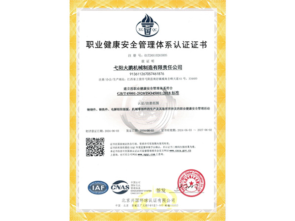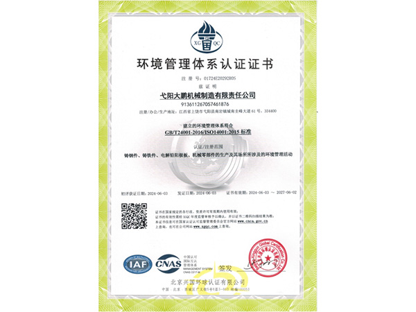 公司順利通過質量管理體系認證、環(huán)境體系認證、職業(yè)健康安全管理體系認證、環(huán)評。2015年5月獲國家工信委頒發(fā)的《鑄造企業(yè)準入條件》;2019年做了安全現(xiàn)狀評價;2020年取得了排污許可證。